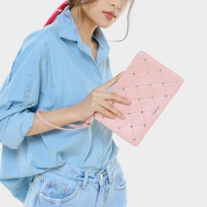 Ví cầm tay trang trí hoạ tiết trái tim VI110